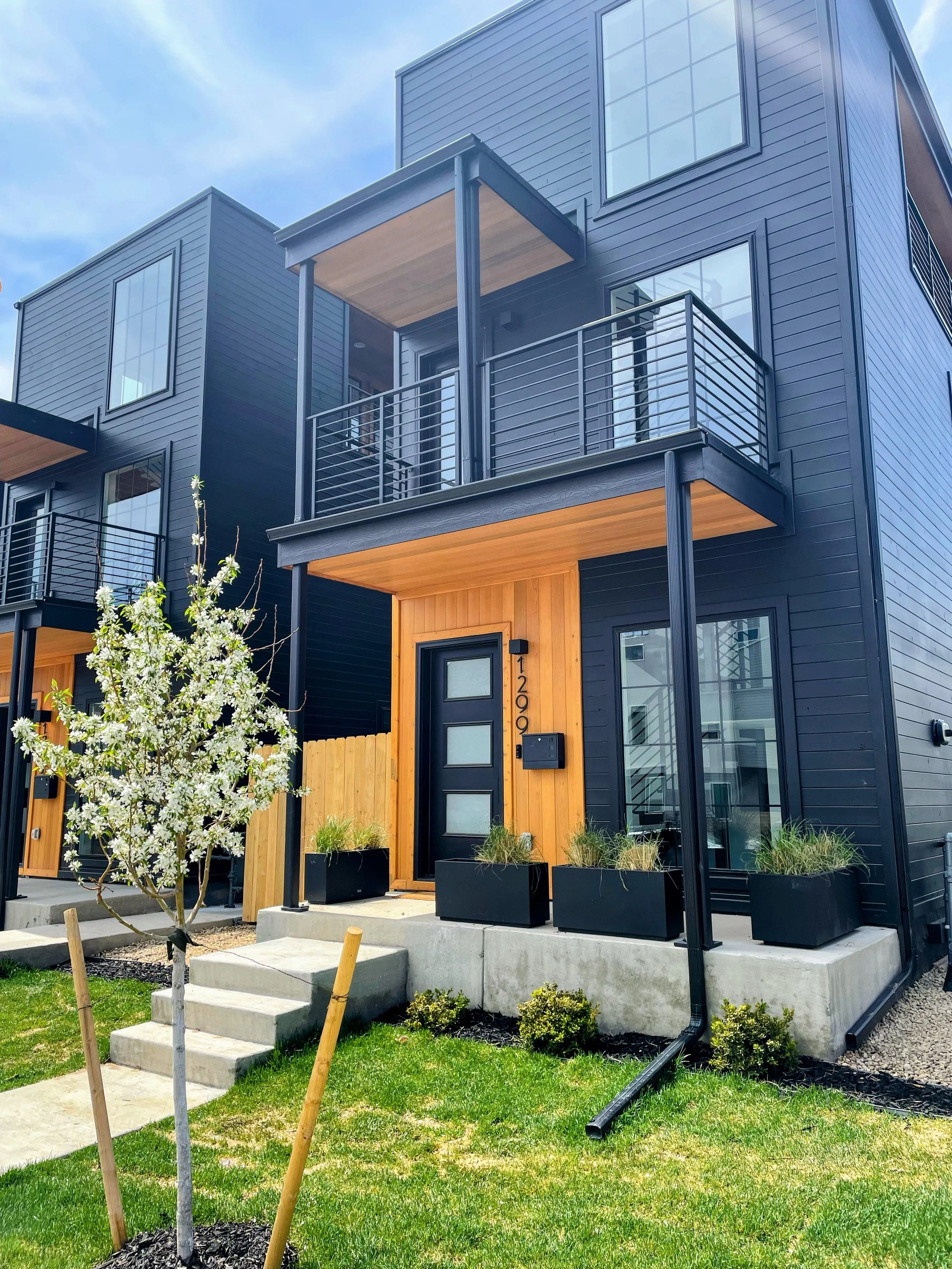 Front units have additional second-floor balconies and front patios.